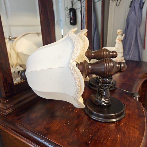 To unike bordlamper selges. Bilde i glasset er like synlig når lampen lyser men kameraet på telefonen viser bare ett lys