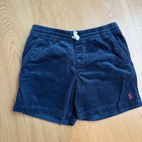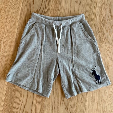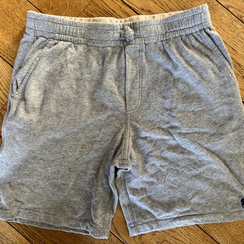 Polo Ralph Lauren shorts for gutt i størrelse 140. Shortsen er grå og laget av bomull. Den har strikk og snøring i livet, sidelommer foran og en lomme bak.