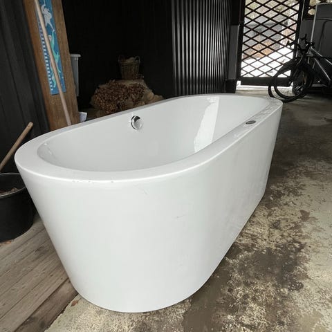 Pent og lite brukt badekar i hvit utførelse. Celeste badekar er et frittstående badekar, med et minimalistisk og ovalt design som passer perfekt inn på ethvert moderne baderom. Badekaret er laget i slitesterk og hygienisk akryl. Det kommer med armatur, justerbare ben, avløpsslange og bunnventil.