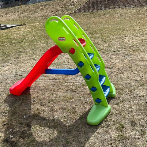 Selger Little Tikes sklie som er pent brukt av en forsiktig jente. Sklia er stabil og står dermed støtt. Eneste feil som jeg vet om, er at det er en liten sprekk i plasten der en utstikkende tapp skal presses inn i en slisse, når sklia er demontert. Ellers noen merker etter såle på mørke sko, som kanskje går av ved litt hard "gnukking". Mener ny pris var ca 1000 kroner på lekebutikk, men ser at de selges på nett til rundt 600 kroner på tilbud.