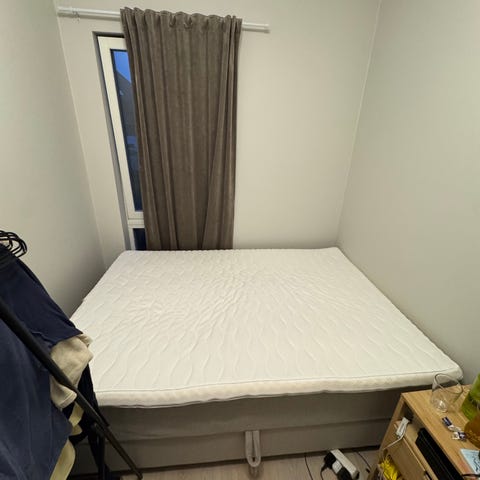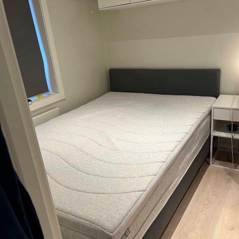 Seng med overmadrass gies bort. Den er pent brukt, bortsett fra et ben som har brukket av. Dette er erstattet av en trekloss ( se bilde ) Sengen er av den mer faste typen ( ikke veldig myk ) men kan sikkert bli mykere ved å bytte ut overmadrassen. Må helst hentes så fort som mulig. Gis bort mot henting 😊 NB sengen består ikke av flere deler, så den må hentes hel.