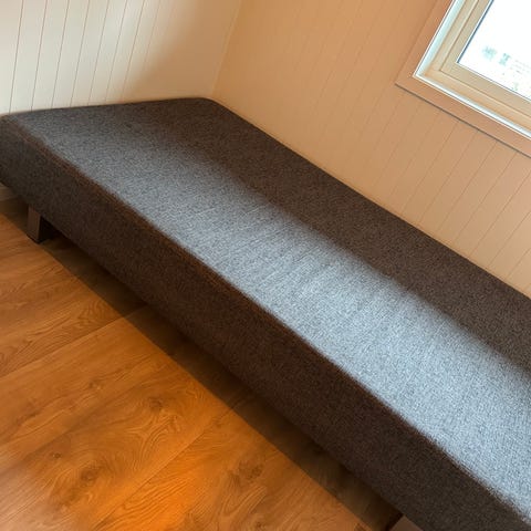 Seng i lyst treverk. Sengen har en rett og lav ramme med fire benpar og plass til madrass i størrelse 120×200. Passer som seng på soverom, gjesterom eller hybel. Naturlig treverk gjør den enkel å kombinere med ulikt interiør og sengetøy.
