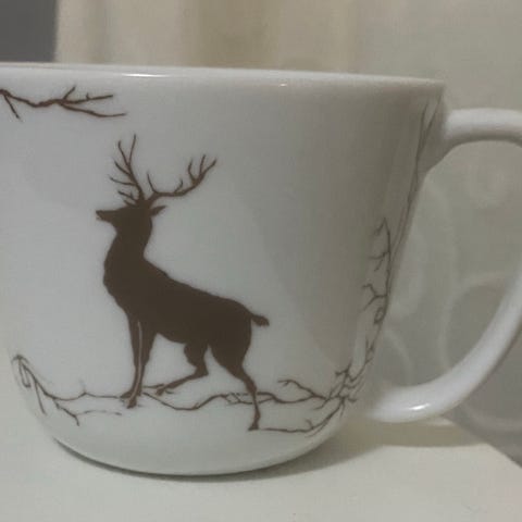 2) Fint Porsgrund Porselen krus i serien Nordic Pattern med motivet blå hjort. Stempel fra 2014. Selges ikke lengre. Helt og veldig pent, som nytt. Kr 100. SOLGT!