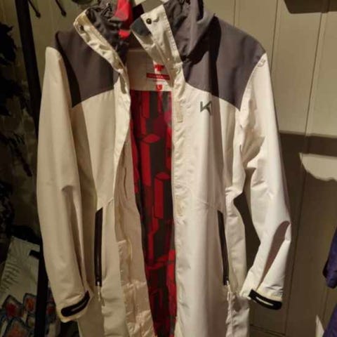 Kari Traa ytterjakke for dame i størrelse L. Jakken er lilla med kontrastdetaljer. Den har hette, hel glidelås foran med klaff og to frontlommer med glidelås. Lengden går ned over hoftene for ekstra dekning. Egnet som ytterjakke til hverdagsbruk og lett friluftsliv.
