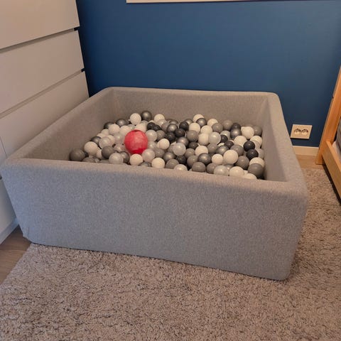 Pent brukt ballbinge fra jommyroom. Jerseystoff og skumgummi med plastballer. Jeg har vasket stoffet. Ballene kan vaskes i oppvaskmaskinen om man ønsker det.