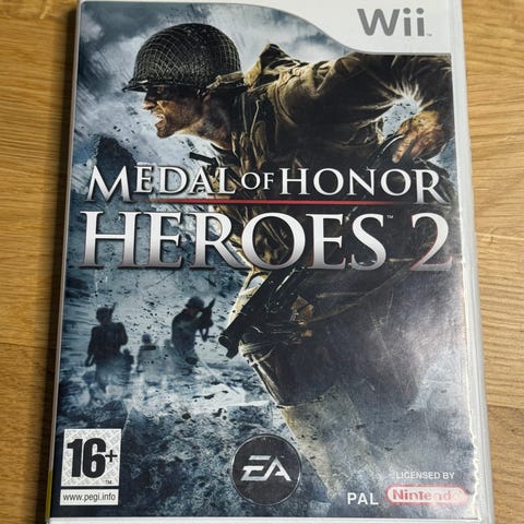 Pent brukt Medal of Honor Heroes 2 spill til Nintendo Wii selges med manual og uten riper.