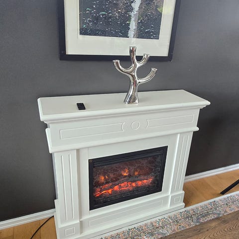 Frittstående biopeis i klassisk design. Peisen har hvit omramming med profilerte detaljer og sort brennkammer. Den er beregnet for bruk med bioetanol og gir synlig flamme uten behov for pipe. Egner seg som dekorativ varmekilde i stue eller andre oppholdsrom, der den plasseres inntil vegg som en tradisjonell peisomramming.