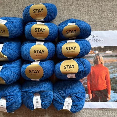 Om ønskelig kan ett påbegynt nøste i hver farge legges ved, de veier ca 40 gram hver.