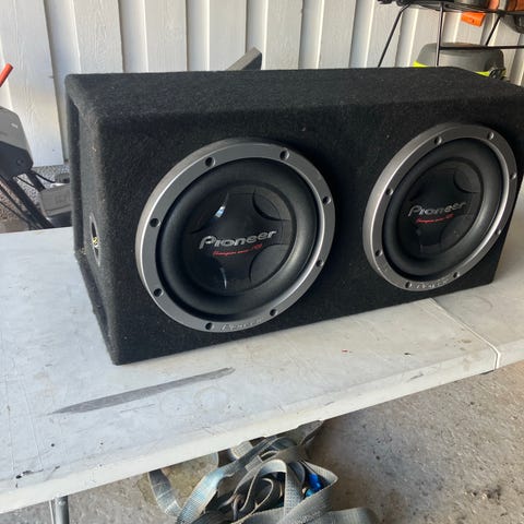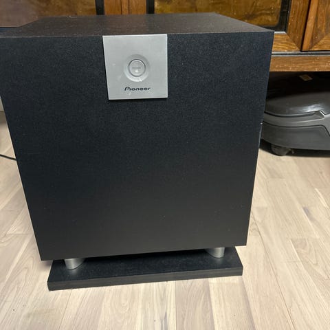 Selger en pent brukt Pioneer subwoofer. Den var opprinnelig en passiv basshøyttaler til et pioneer surroundanlegg, så den kan brukes som passiv basshøyttaler. I tillegg, så har jeg kjøpt en mini 100w amp (aktiv subwoofer adapter), så den kan brukes som en aktiv høyttaler også. Den kan stå loddrett eller ligge vannrett.