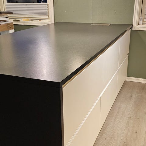 Mål på øya er 940 x 1450mm, høyden er 900mm. Vi er behjelplig med frak. Spør oss om pris.