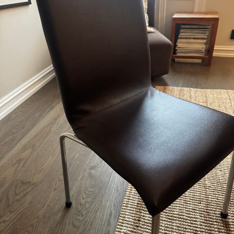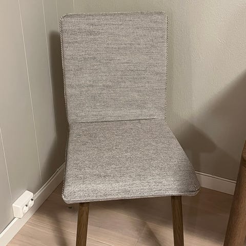 De er kjøpt på ulike tidspunkt, men er veldig pent brukt, uten synlige merker. Det er 2 stoler av hver farge, hv kremhvit, grå og mørk grå.
