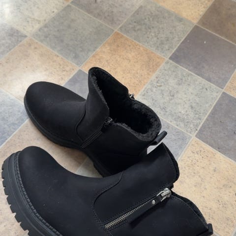 Selger disse fine, classy skoene i skinnaktig stoff. Passer perfekt til høst, vinter og vår. Kjempefine til hverdags og pynt. Skoene er behagelige å gå i, med stødig hel. Det er et par småmerker på skoene, se bilde. Elles er skoene plettfrie, og kan vare i mange år til!