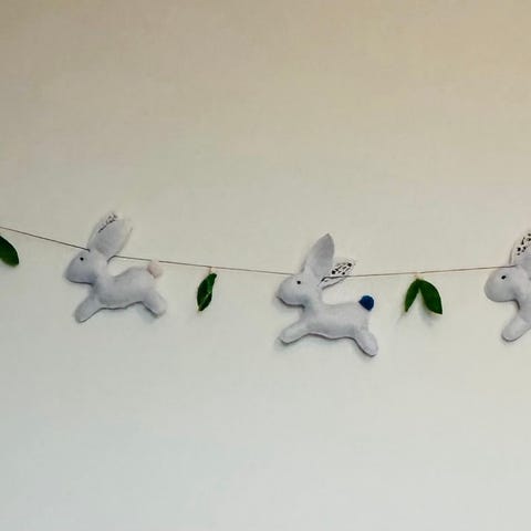 Håndsydd girlander med ønsket navn. Spesiallaget hvor fargekombinasjon og fargevalg blir avtalt. Prisen er 80kr pr bokstav. Oppheng inkluderes i pris.