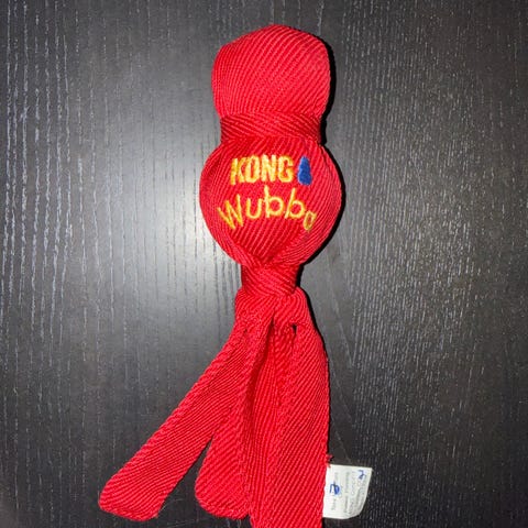 3 stk kong wubba str L selges da vi har så mye annet. Lite brukt, men blitt litt skittene. Tåler sikkert en runde i vaskemaskin☺️