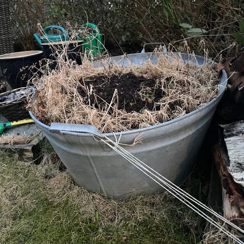 Kjekk, stor bålpanne i jern selges. Har selv brukt den som plantekasse i hagen.