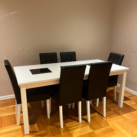 Stort bord med god plass til 8 stk, fint for store middagsselskap ❤️