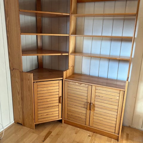 Stor Bokreol fra BAHUS, Bergen - hjørneseksjon, heltre furu
