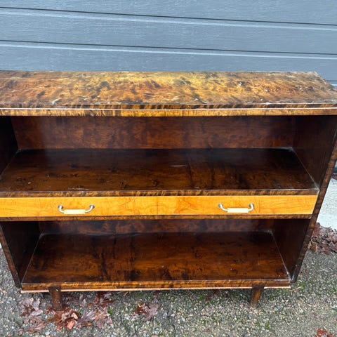 Liten art deco skjenk i flammebjørk. Mulig Gjestal Møbelfabrikk