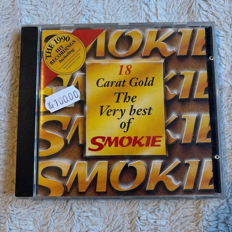 Smokie 18 Carat Gold The Very Best Of LP plate. Samlealbum med utvalgte låter fra Smokie, utgitt på vinyl. Standard 12" LP-format, med omslag som vist på bildet. Utgitt på Polydor-etikett. Egner seg for avspilling på platespiller som støtter 33 1/3 rpm LP-plater.