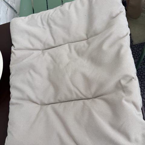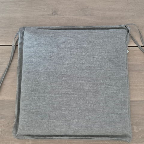 Selger fire IKEA sitteputer i beige. Putene har borrelås-hemper i hjørnene for feste. Egnet som sitteputer til benk, stol eller lignende sittemøbler. Noen puter har noen flekker på den ene siden, men da kan de fint brukes fra den andre siden. Jeg har ikke prøvd å vaske dem bort, så kan godt være de går bort i vask.