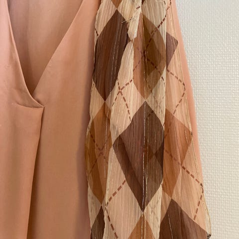 Selger denne lange blusen i fine grønn/ beige farger med matcende skjerf. Fint til både hverdags og litt mere pyntet. Pssser ca str M/L. Kan sende