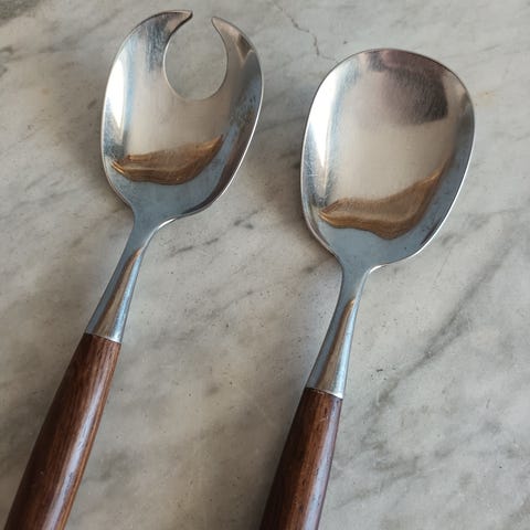 Serveringsgaffel i teak og stål fra 1960 tallet.