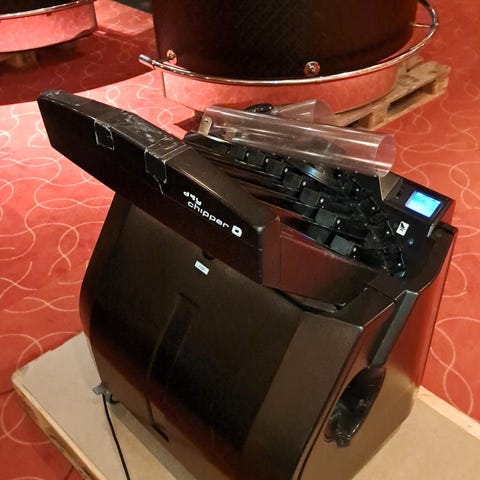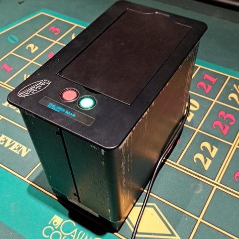 Dette er en slik maskin som casinoene bruker for å automatisk stokke kortene. Denne maskinen har en veiledende nypris på ca 200-250000 og brukt går de for 50-100000.
