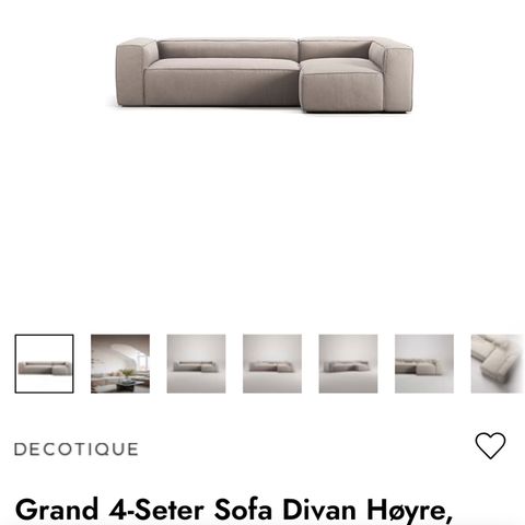 Sjekker interesser for daphne sjeselong til modulsofa da vi ikke får den inn i leiligheten vår. Se alle mål på bilde 2. den står nå i boden med delvis emballasje. Den er forsøkt å tatt opp til leilighet og har på grunn av det dratt på seg en liten skade - en liten rift i stoffet på hjørnet under armlenet. Dette er ikke synlig når man ser på sofaen rett fram. Ettersom den står i boden får jeg ikke tatt noe bilde av det, men du må gjerne komme å sjekke før evt, kjøp. Selges derfor billigere til tross for at den aldri er brukt. Må hentes!