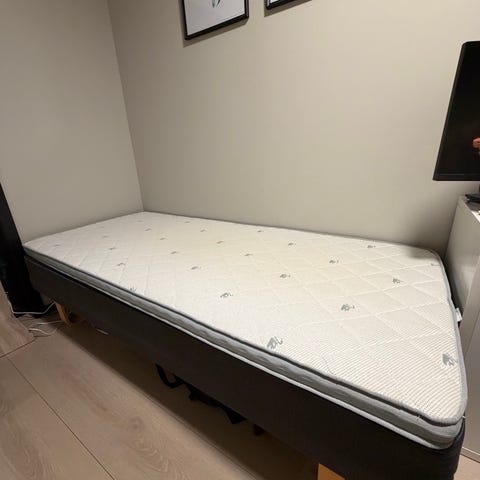 Enkelt seng selges med overmadrass mer eller mindre ubrukt, kun stått på gjesterommet!