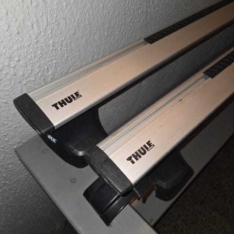 Låsbart Takstativ med Thule låsbart skistativ til Tesla 3. Stativet er i god stand og klart til bruk.