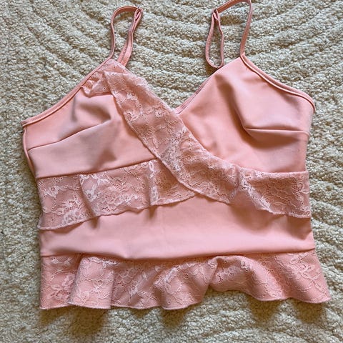 Den er Str M men ville sagt passer str S, men også XS-M. Den kan knytes på ulike måter og kan brukes vanlig og som off-shoulder. Kom med bud eller spørsmål!