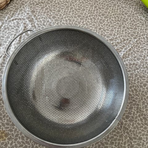 IKEA dørslag i rustfritt stål. Rund form med perforert bunn og sider for effektiv avrenning av vann. Utstyrt med to sidehåndtak for enkel håndtering. Egnet til å skylle og sile pasta, grønnsaker og annen mat på kjøkkenet.