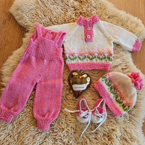 Hjemmestrikket dukkeklær-3 deler