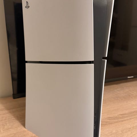 Sony Playstation 5 spillkonsoll i hvit farge. Konsollen leveres med én trådløs DualSense-kontroller i matchende hvit/svart design, samt nødvendige tilkoblingskabler slik som strømkabel og HDMI-kabel etter hva som vises på bildene. Egnet for bruk med kompatible PS5-spill, apper og medietjenester. Konsollen kan plasseres både stående og liggende avhengig av oppsett og tilgjengelig plass.