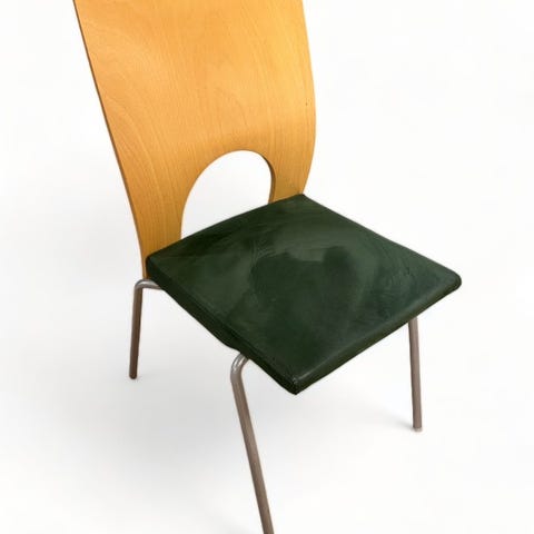Stolene er hele i trekket, men trenger en vask. Stolene i seg selv er i god stand. Stått på et regnskapskontor.