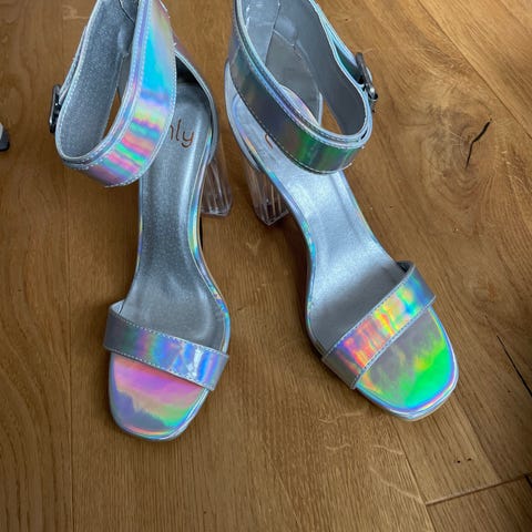 ASOS hæler i størrelse 38 med sølvstrass på hælene. Hælen er ca 10 cm. Skoene er kun brukt én gang.