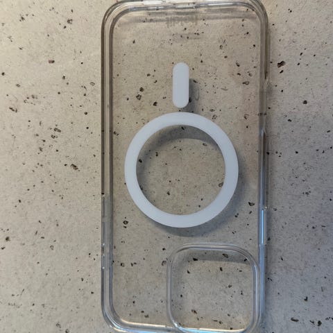 Apple telefondeksel gjennomsiktig med MagSafe-ring.