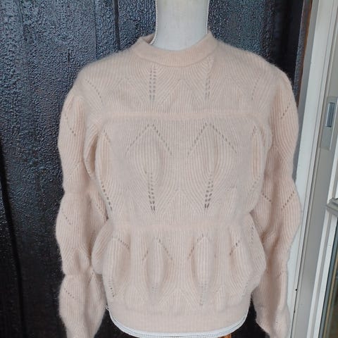 & Other Stories genser for dame i størrelse M. Genseren er rosa. Den har ribbestrikket kant nederst, ved ermer og i halsåpningen. Passer som en varm hverdagsgenser til bruk inne eller ute i kjøligere vær.
