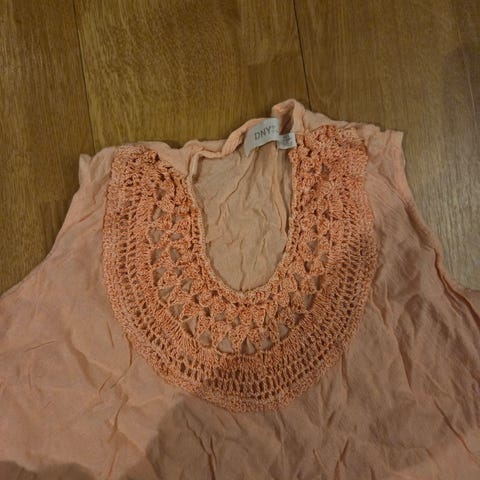 Selger en kjempesøt og luftig bluse fra Xhilaration. Blusen har en lys off-white farge med et vakkert mønster i gull-shimmer som gir den et eksklusivt preg. Den har nydelige blondedetaljer rundt halsen og øverst på brystet, samt vide ermer som gir en fin bohemsk look.