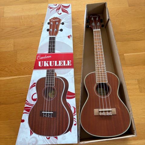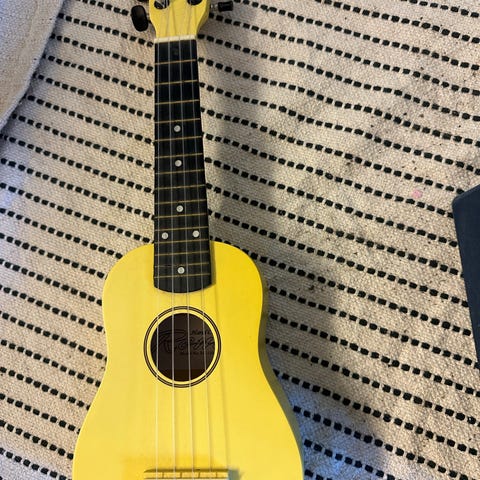 Morgan ukulele, den er ikke noe særlig brukt bare et par ganger, kan også kjøpes med 2 bøker til og lære og spille sanger. Og kan også kjøpes med gitarplekkere 7stk.