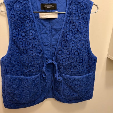 Tregic Quilted Waistcoat fra Max Mara er en superlett og deilig dunvest i delikat off white/beige farge i et quilted diamantmønster. Vesten har ståkrage med brede knytebånd med Max Mara-logo. Stikklommer i sidene og glidelåslukking foran. Vesten er veldig lett og behagelig og kan lett brettes sammen og has i den medfølgende jakkeposen - genialt!