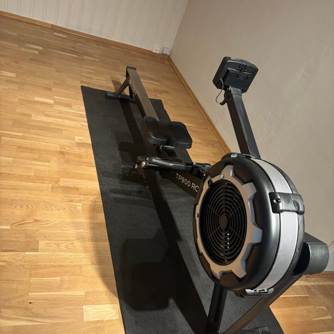 Rower 20 romaskin med innebygd treningscomputer og display. Maskinen har sete som glir på skinne, fotstøtter med stropper og håndtak festet til vaier. Egnet for innendørs kondisjons- og styrketrening for hele kroppen.