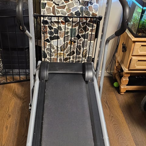 Helt ny tredemølle. Virket kun 15 minutter, før det ble stopp! Har hatt elektriker til å se på den. Han fant et brudd på en ledning, men kunne ikke si sikkert hva feilen var. Hvis han fikk holde på noen timer, mente han at han skulle få den til å virke. Jeg var ikke interessert, derfor gir jeg den bort hvis noen er interessert i å prøve.