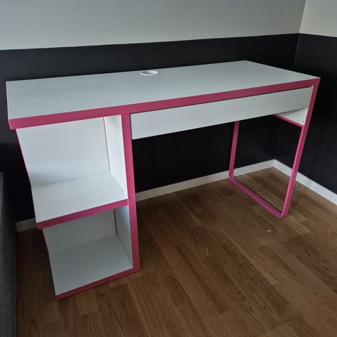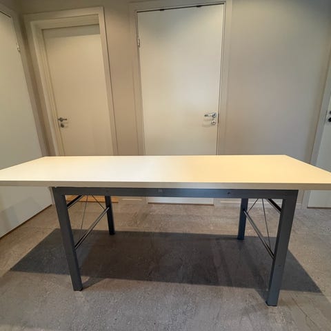 Skrivebord/kontorpult gis bort,i god stand, høyde kan justeres . Dybde er 120 på det bredeste og 80 på det smaleste.
