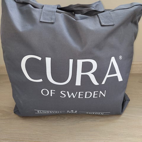 Cura of Sweden Queen Size vektdyne på 16. kg. Dynen leveres i en grå bæreveske med glidelås og hanker. Størrelse fremgår som queen size, egnet til dobbeltseng. Farge på dynen er hvit. Vektdynen er utformet for å gi jevn vektfordeling over kroppen. Passer til bruk i vanlig sengetøy for voksne.