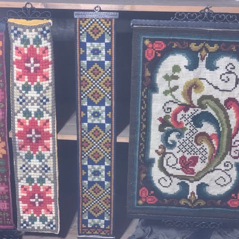 Nydelig brodert veggteppe i flotte farger. Str. 85x50 cm. Smijernsoopheng.