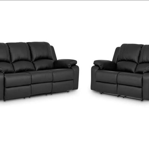 Sofaen er romslig og god med seter som kan justeres bakover og koppholder. Den har noen flekker som antakelig vaskes vekk. Ett sete har en ødelagt vaier som bør byttes slik at seteryggen går opp igjen. Ellers fungerer den og har mye bruk igjen. Må hentes i Holmestrand