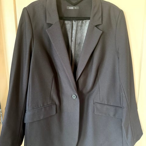 H&M BIB dressjakke for dame i størrelse 50. Jakken er svart og laget i polyester. Den har klassisk krage og slag, samt to frontlommer med klaff. Modellen er noe kortere bak. Innsiden har et glatt fôr med blomsterprint. Egner seg til bruk som penjakke eller blazer til både jobb og mer formelle anledninger.