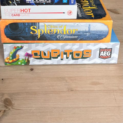 Dette er én av de egne annonsene for brettspill-haugen jeg selger, hvis noen vil bruke Fiks ferdig.