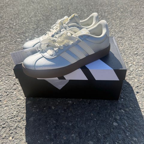 Adidas sneakers joggesko i størrelse 39 1/3. Skoene har svart overdel med leopardmønster på Adidas-stripene og hælpartiet. Klassisk snøring foran og gummisåle. Egnet som fritidssko og hverdagsbruk.
